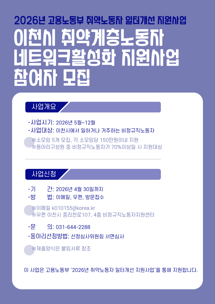 취약계층노동자 소모임지원사업 참여자 모집 공고