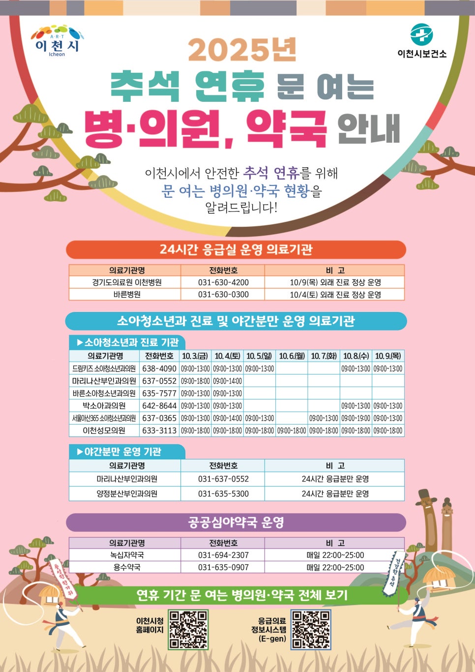 2025년 추석 연휴 문 여는 병·의원 및 약국 안내