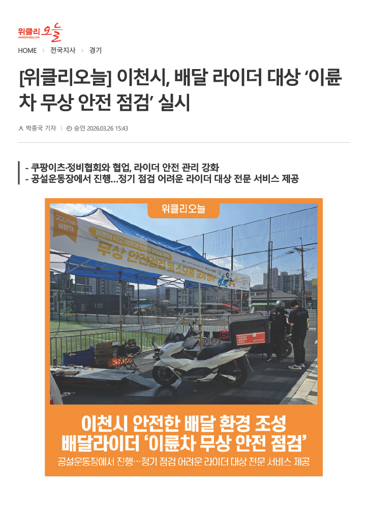 이천시, 배달 라이더 대상 '이륜차 무상 안전 점검' 실시